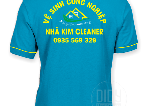 Áo thun đồng phục dịch vụ vệ sinh Nhà Kim Cleaner được DIDY sản xuất bằng chât liệu vải cá sấu thái, co dãn 4c, ít bám bẩn và nhăn khi sử dụng. In logo và mặt sau in lụa chác chắn, Hình in được bảo hành.